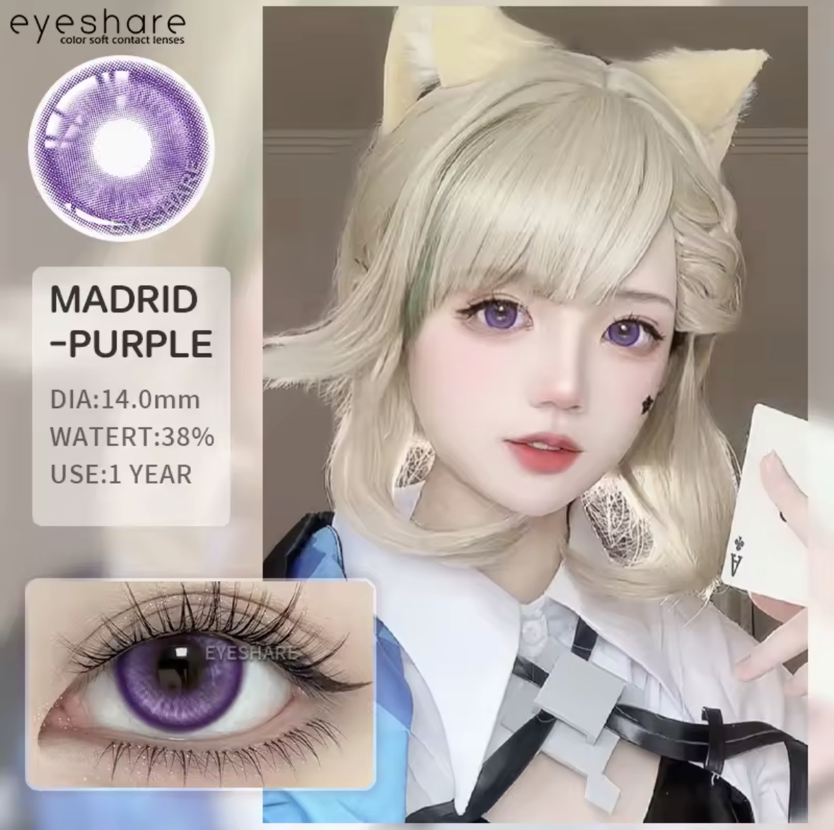 Categories: Anime Cosplay Contact Lenses, Circle Lens, Crazy Lens, Halloween Lens, Lentes de contacto, Nuevos productos, Violeta